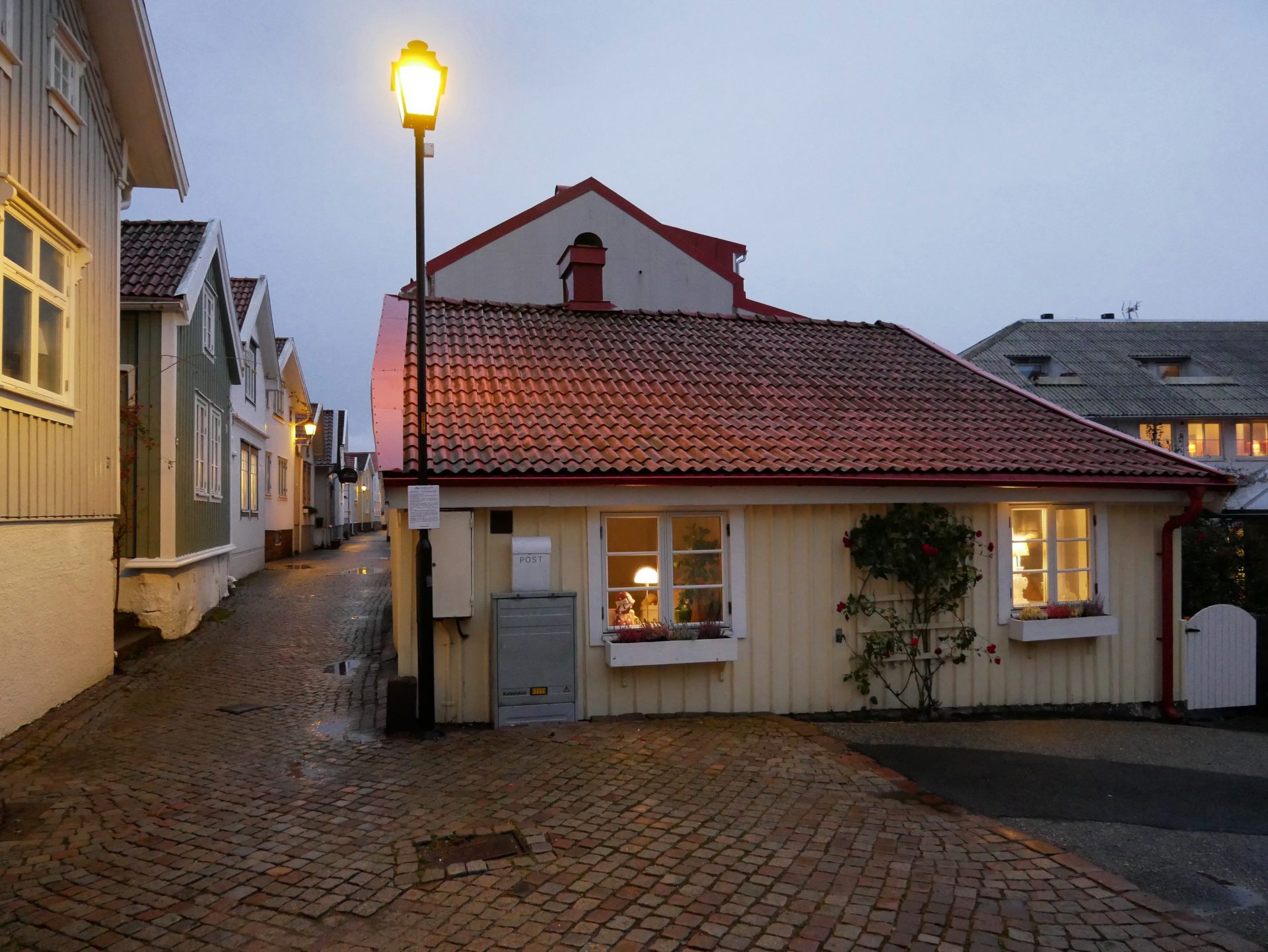 Nous avons démarré avec Smögen, petite localité située sur la côte ouest, dans la province de Västra Götaland. Il s’agit en réalité d’une île du même nom, reliée par un pont. Smögen est un village de pêcheurs. La pêche est une activité importante dans la région. Nous nous sommes baladés sur les quais du port, sous la pluie. Ces quais sont très animés pendant la saison estivale avec les boutiques, les restaurants, les cafés et les bars. En automne, vous pouvez profiter du calme et d’une visite sans trop de touristes.